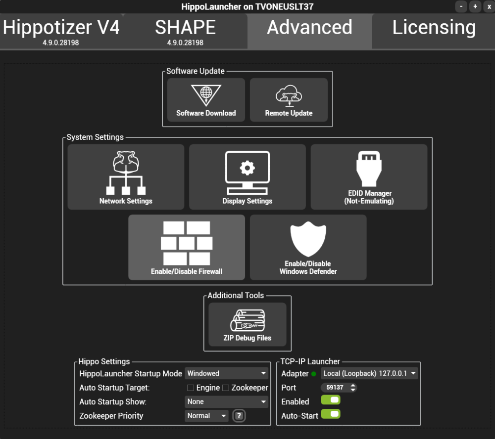 HippoLaunch’s advanced functions are intended to be used only when the Engine and Zookeeper are not running.