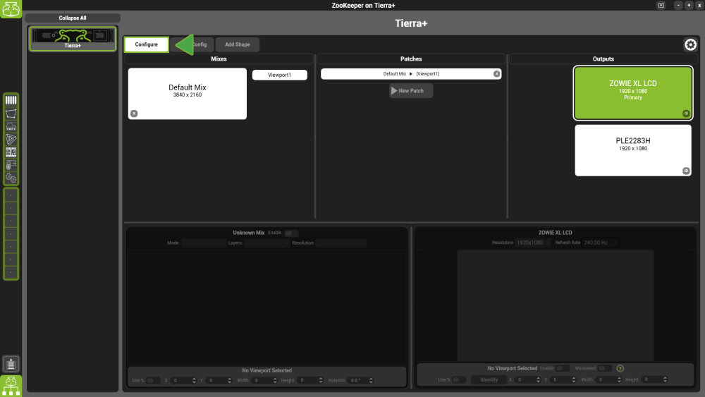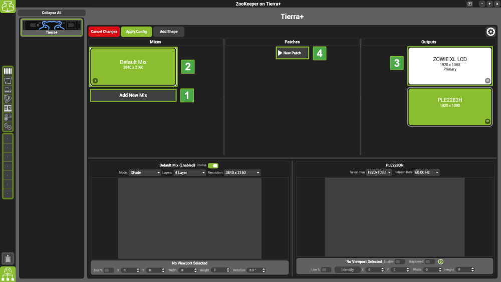 By Default, a new mix will be created with the resolution of the output and the viewport will send the whole mix to the whole output.