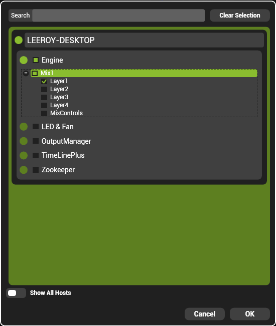 3. Using the HippoNet PinTree expand Engine, then Mix 1 and finally select the layers you would like to include in this timeline. If there are more mixes required then select those as well to include them in the timeline. In the next window give the timeline a name.