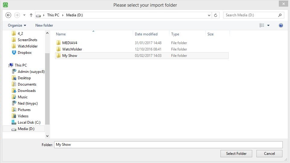 Selecting import show will shut down Zookeeper (if it is running) and launch again, prompting the user to select the directory containing the exports.