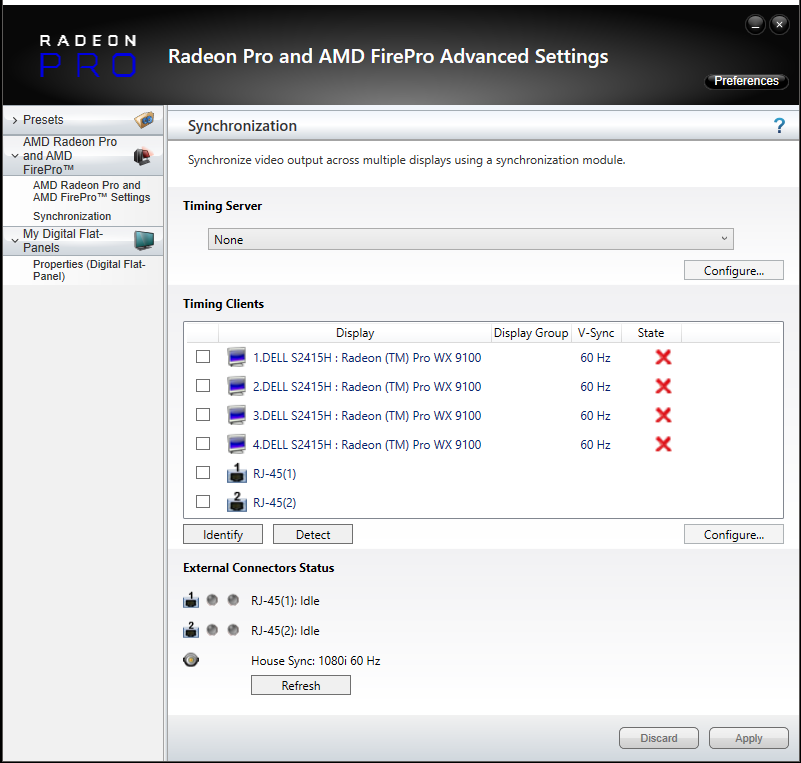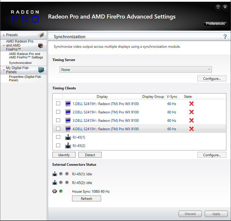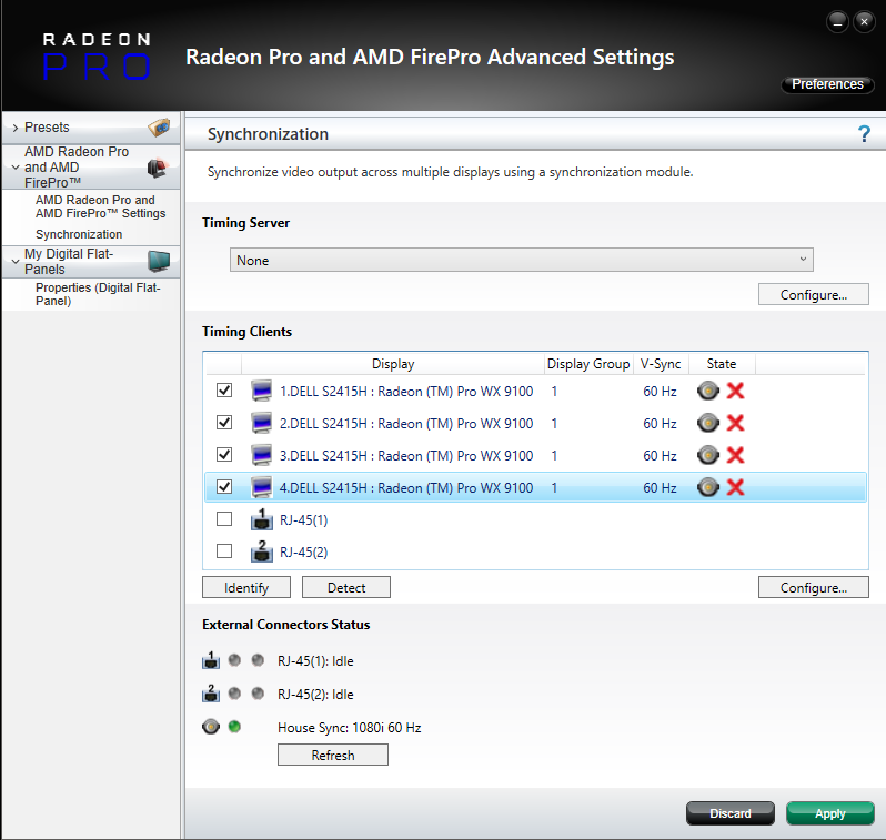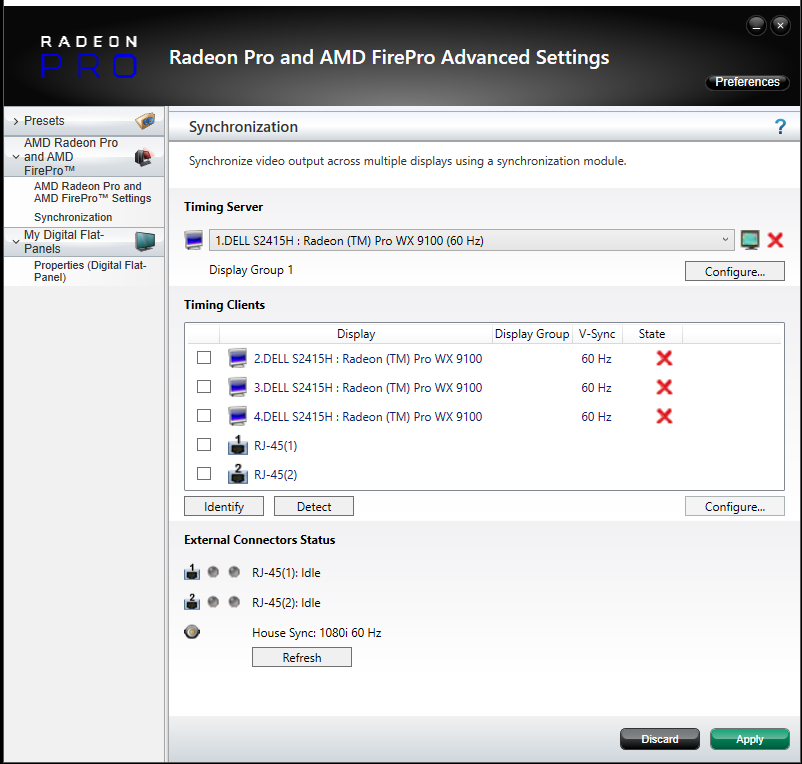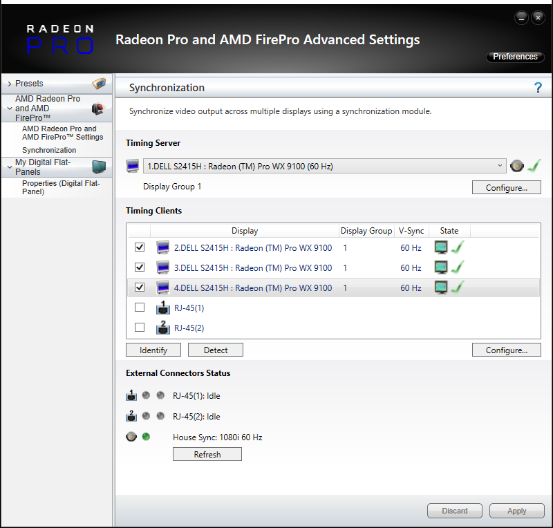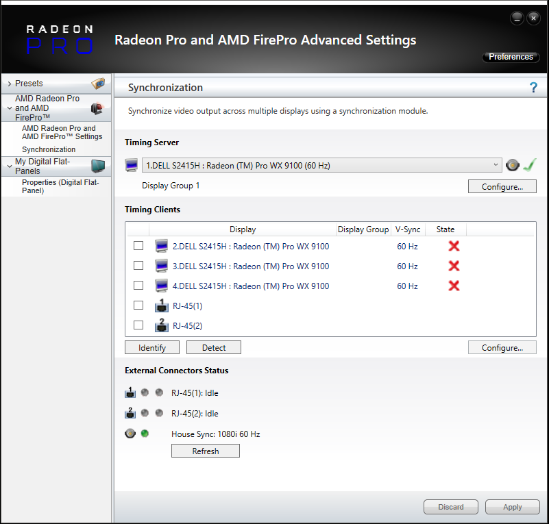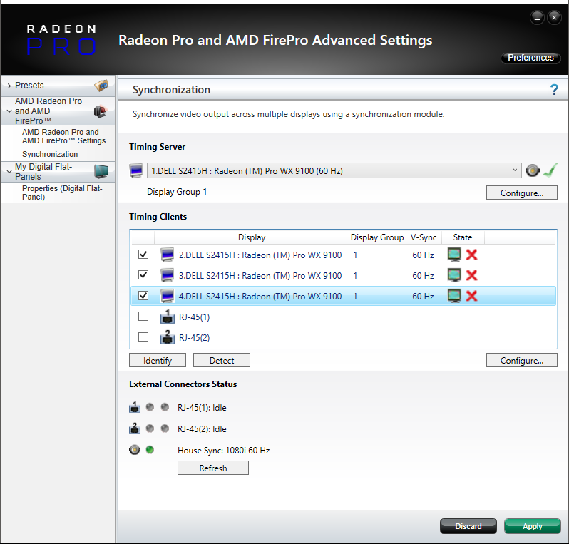 Only displays that have identical resolutions and EDIDs can be synced together. It is strongly advised to emulate the same EDID on displays to be Genlocked. Information on EDID emulation can be found here.