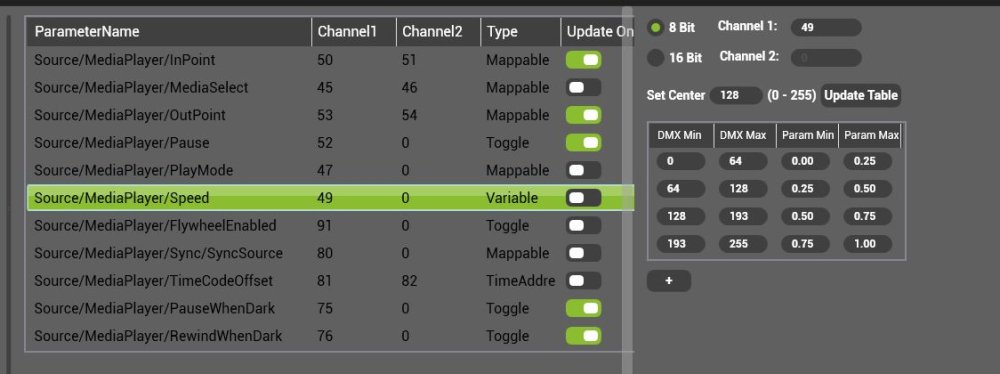 The speed of a layer should be set to 25% exactly by default. This requires mapping the value of 25% to a DMX value of 64: