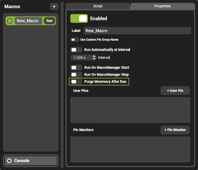 | Note: Purging Memory may prove too computationally heavy on scripts that run at a high frequency. (many times per second). |