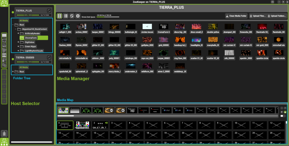 Media Manager stores and encodes all movies, images and sound files in the Hippotizer system.