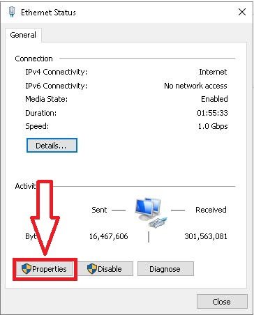 Click on the properties button.