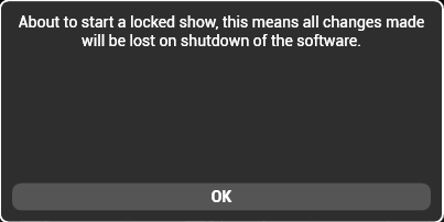 During show start there is a warning to the user that any changes will be lost while the show is locked.