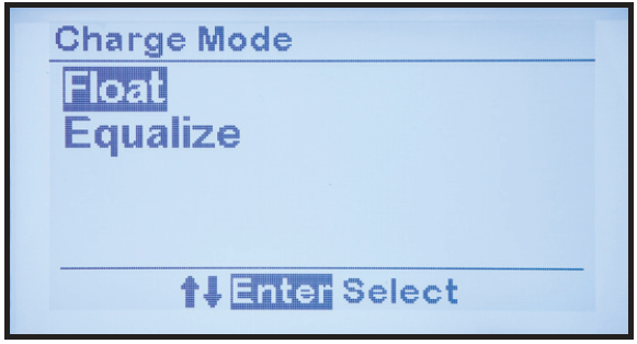 - EQUALIZE – to balance voltage among battery cells. Before using, consult your battery manufacturer’s data sheets.