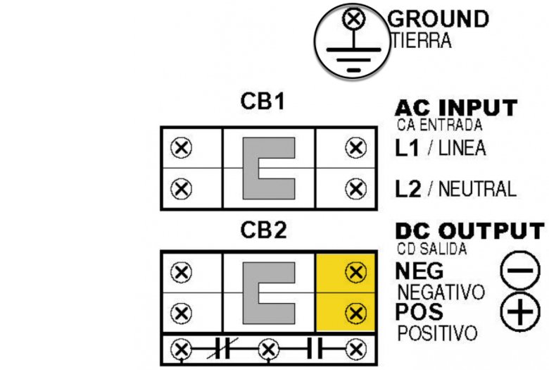 - Connect wires to appropriate locations on the DC Output Breaker (CB2+/-) as indicated on drawing above.