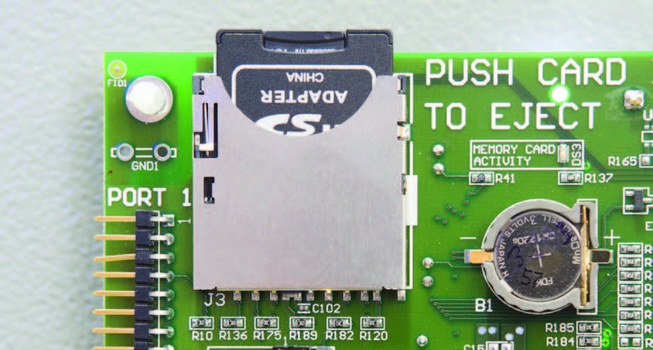 ATevo provides a socket for an SD Memory Card on the Main Control Board (A1). To access it, open the front panel door. Locate the socket at the top-left corner of the Main Control Board’s back side.