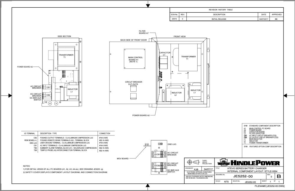 JE5251: plano esquemático del cargador de batería ATevo: gabinete NEMA 1 estilo 5054 |
