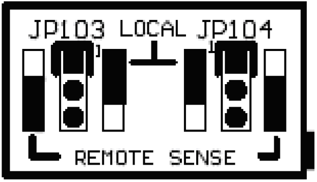 La configuración del puente tendrá dos BLOQUES DE CORTOCIRCUITO de detección remota (JP103 y JP104) en el lateral de la LOCAL SENSE (DETECCIÓN LOCAL) de los conectores de pines. Los BLOQUES DE CORTOCIRCUITO se instalarán en los dos (2) pines más alejados del borde de la placa.