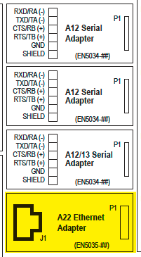 Shown directly to bottom-left of Main Control Board (A1) on silkscreen. Plugs into Main Board at P13. Supports DNP3 and Modbus protocols via 10/100 copper Ethernet connection.