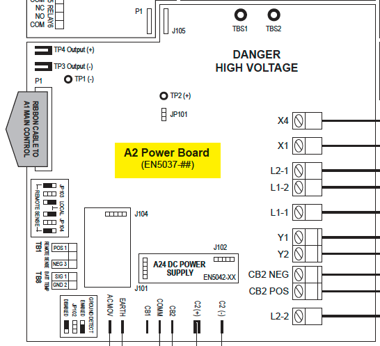 Shown on bottom-left of silkscreen. Mounted on heat sink along left side of ATevo. Contains most power electronic connections, and terminal blocks for remote sense and battery temperature compensation options.