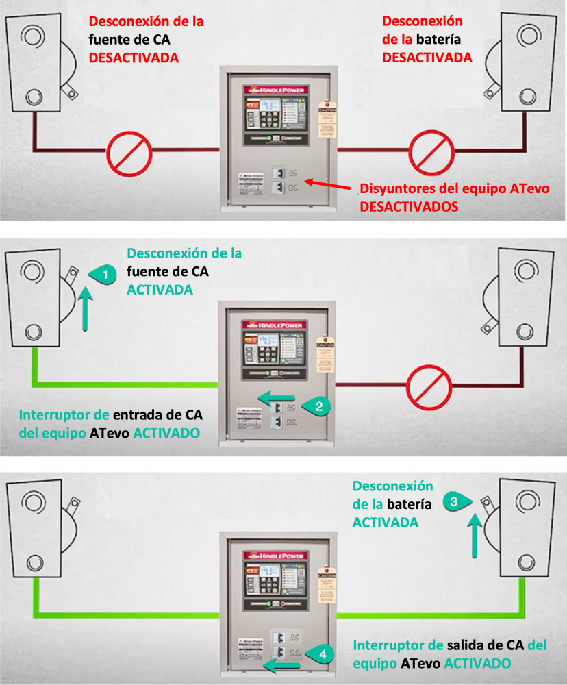 El procedimiento de encendido se muestra abajo mediante (1) un video y (2) un gráfico.