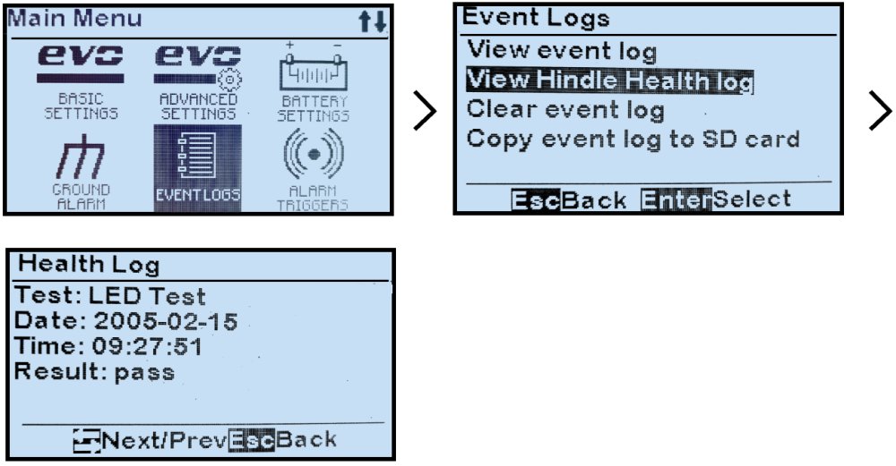 MENU > EVENT LOGS > ‘View Hindle Health log’