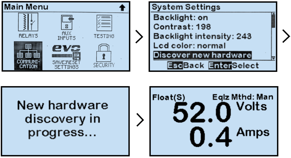 During a discovery poll, the Primary ATevo queries ATevos with Charger IDs A, B, C, and D. The Primary ATevo records the Charger ID of a responding ATevo in its database, and immediately attempts to start sharing load with that ATevo. Once a Primary ATevo discovers a Secondary ATevo, it expects it to be present the next time it is reset or power-cycled. As such, the Primary will continuously poll any previously discovered Secondary whether it is present or not. It will no longer matter which ATevo starts up first, following a power