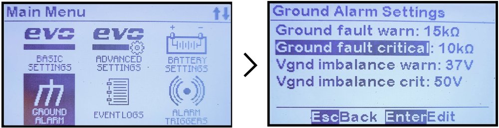 - ground imbalance alarm – triggered by pos(+) / neg(-) difference