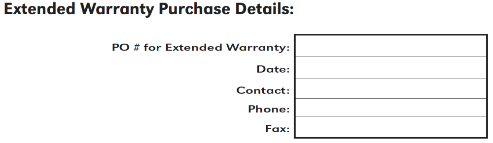The manufacturer’s extended warranty includes all items as mentioned in the ‘Standard Warranty’ as previously listed, plus reasonable in/ out freight costs related to a warranty claim for parts. Said freight cost is based on either standard UPS rates or common carrier only, as appropriate. Contact your sales representative for more information & pricing regarding the extended spare parts warranty.
