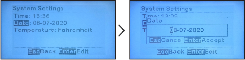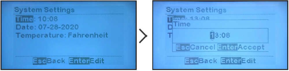 - Press LEFT and RIGHT to navigate to the digit to be modified (if applicable).