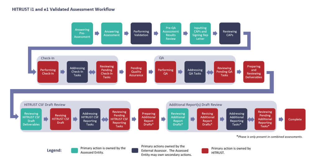 During this phase, HITRUST performs automated Quality Assurance (QA) checks and a high-level review of the assessment, accompanying required documents, and webforms (Organization Information, Scope of the Assessment, Factors, Validated Report Agreement, Rep Letter, Test Plans, External Assessor Time Sheet, QA Checklist, and Audits and Assessments Utilized) to determine if the assessment is ready for a HITRUST QA Analyst to review.