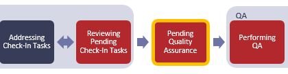 In this phase, HITRUST reviews all tasks addressed by the Assessed Entity and External Assessor. HITRUST will close the tasks that have been resolved and, if all tasks have been resolved, accept the assessment after which the assessment moves into the Pending Quality Assurance phase. HITRUST will send any tasks requiring additional attention back to the External Assessor with additional comments or instructions. If a task is assigned to the External Assessor or Assessed Entity during this phase, the assessment automatically returns to the Addressing Check-In Tasks phase. All check-in items must be resolved by the beginning of the reserved QA block or the assessment’s QA reservation will be canceled and the Assessed Entity will be required to make a new QA reservation.