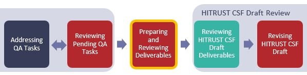 In this phase, HITRUST will prepare and review the HITRUST CSF i1 or e1 draft reports. If any questions arise during this phase, the HITRUST QA Analyst creates additional tasks and the assessment returns to the Addressing QA Tasks phase. The HITRUST QA Analyst will upload the draft report(s) to MyCSF once the draft reports are internally reviewed by HITRUST and all follow-up questions are resolved. The assessment will then enter the Reviewing HITRUST CSF Draft Deliverables phase. For additional information on reporting, see Chapter 15 Reporting & Maintaining a HITRUST Certification.