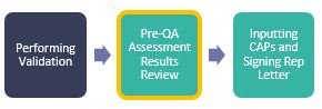 The Assessed Entity and External Assessor must both review and approve or reject the pre-QA assessment results. If either party rejects the results, the assessment will automatically return to the Performing Validation phase. If both parties approve the results, the assessment will automatically move to the Inputting CAPs and Signing Rep Letter phase.
