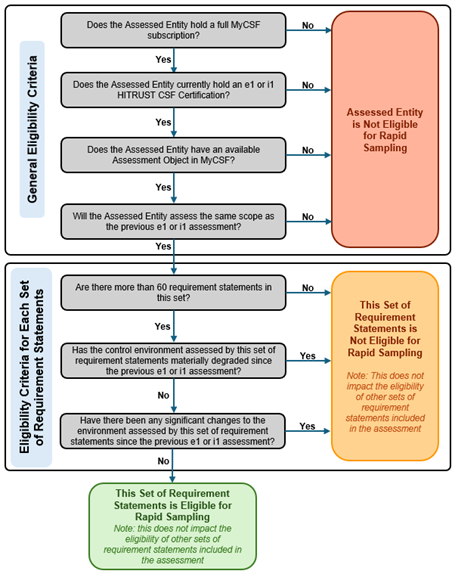 Eligibility to apply the rapid sampling approach is determined individually for each set of requirement statements included in the assessment (where a “set” is the set of e1 core, i1 core, and each set of requirement statements added by a single Compliance factor).
