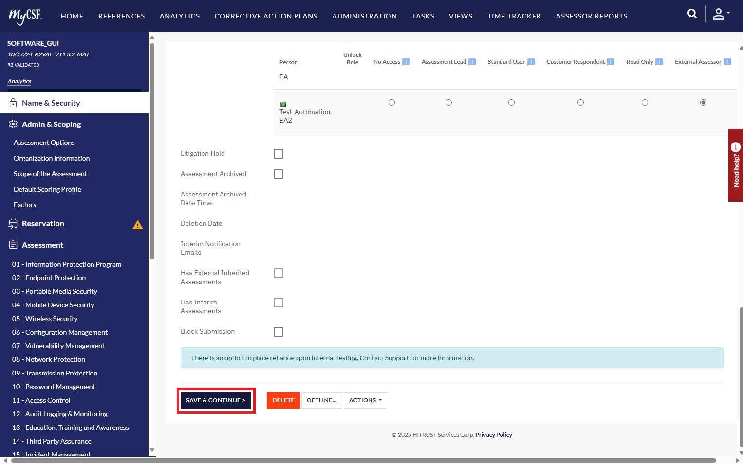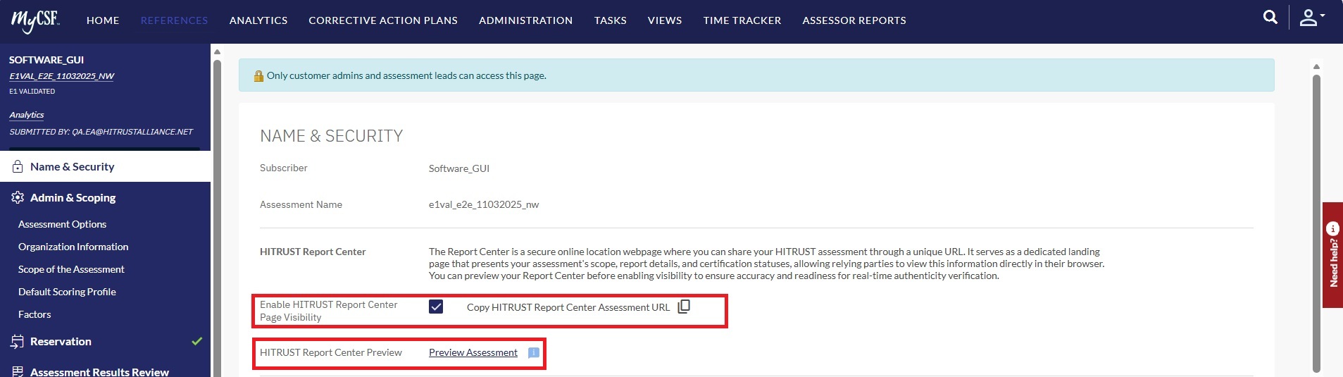 1. Navigate to the Name & Security or HITRUST CSF Reports page of the assessment.