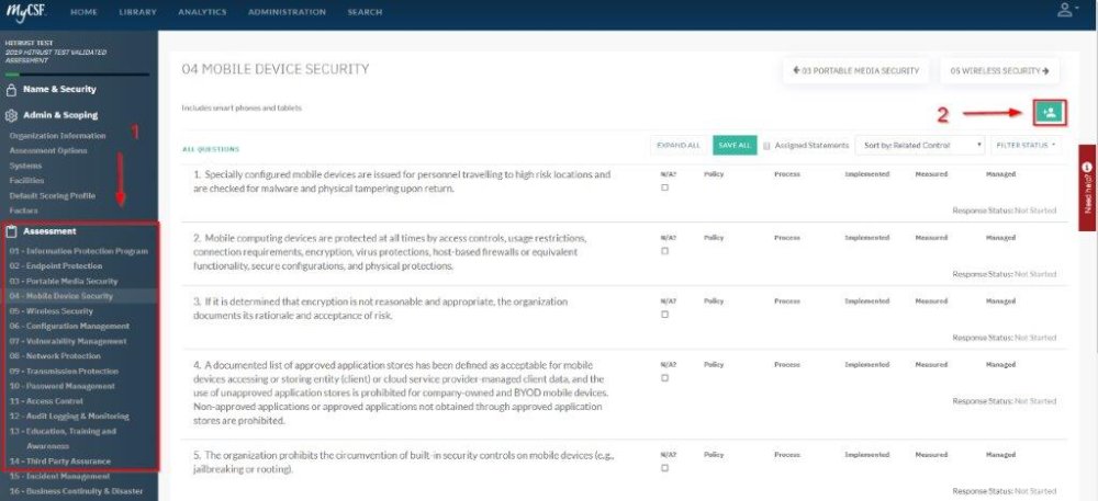 - From the Assessment Questionnaire, click on the Assessment Domain you wish to assign.
