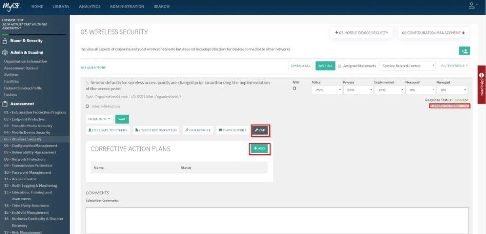 For Statements where deficiencies are found, you are able to detail Corrective Actions that will help remediate the identified problem.