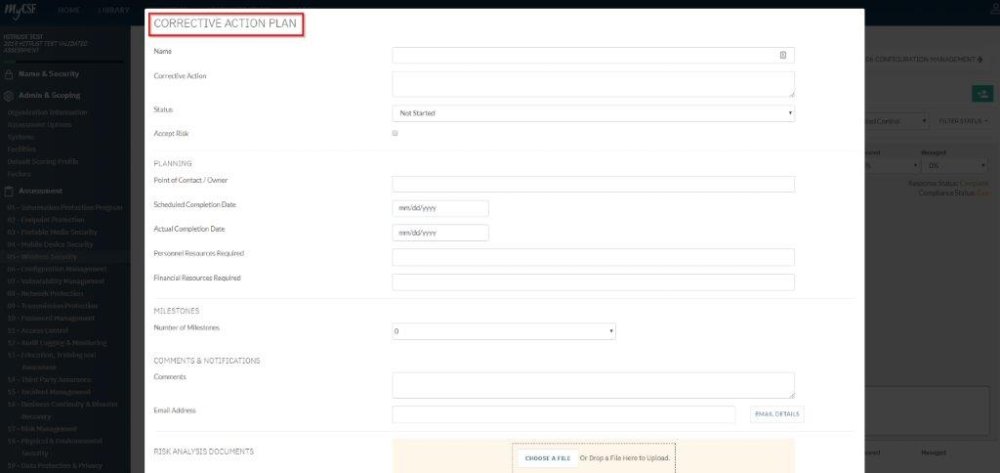 4. A subsequent window will appear so that you may enter details about your Corrective Action Plan.