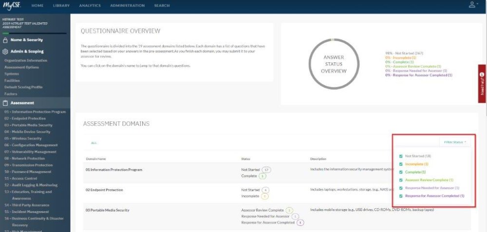 ‘Not Started’ – These are domains that contain Assessment Statement that you have not entered any information.