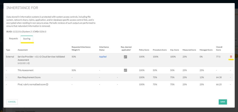1. Locate the Inheritance Request in the Inheritance modal, then click on the trash can icon to delete.