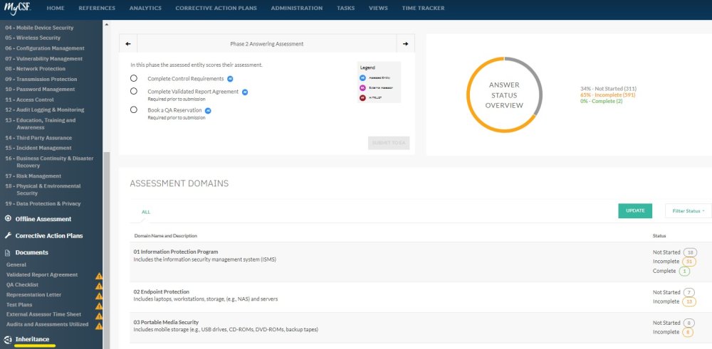 1. From the Assessment Domain, expand the requirement statement view and click on the ‘Inheritance’ button to open the Inheritance Modal.