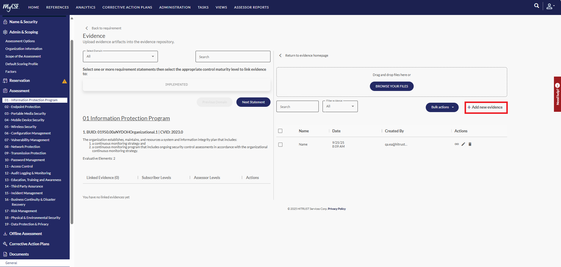 4. On this page, you have several options to upload evidence on this page. Drag and drop, browse your files, or select “+ Add Evidence” to add new evidence.