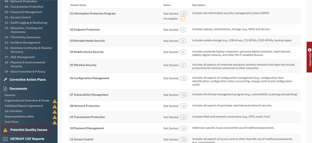 - If you wish to view all of the Potential Quality Issues in a consolidated list, press the “Potential Quality Issues” item towards the bottom of the left navigation bar.