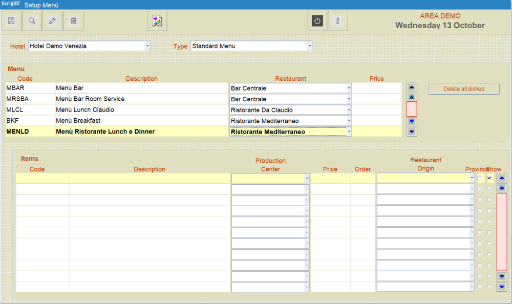 • Banquet: Banquet menù type is used for the management of banquets; currently not managed.