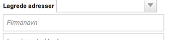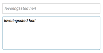 Her registreres ledetekstene for leveringsadressefeltene. Det som registreres vises i kursiv i feltene i handlekurven. Det som står i tekstboksen blir borte når bruker begynner å registrere noe i tekstboksen.