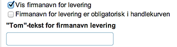 Dette valget styrer om firmanavn for levering skal være obligatorisk.