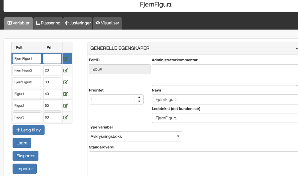 Felt A = type variabel avkrysingsboks.