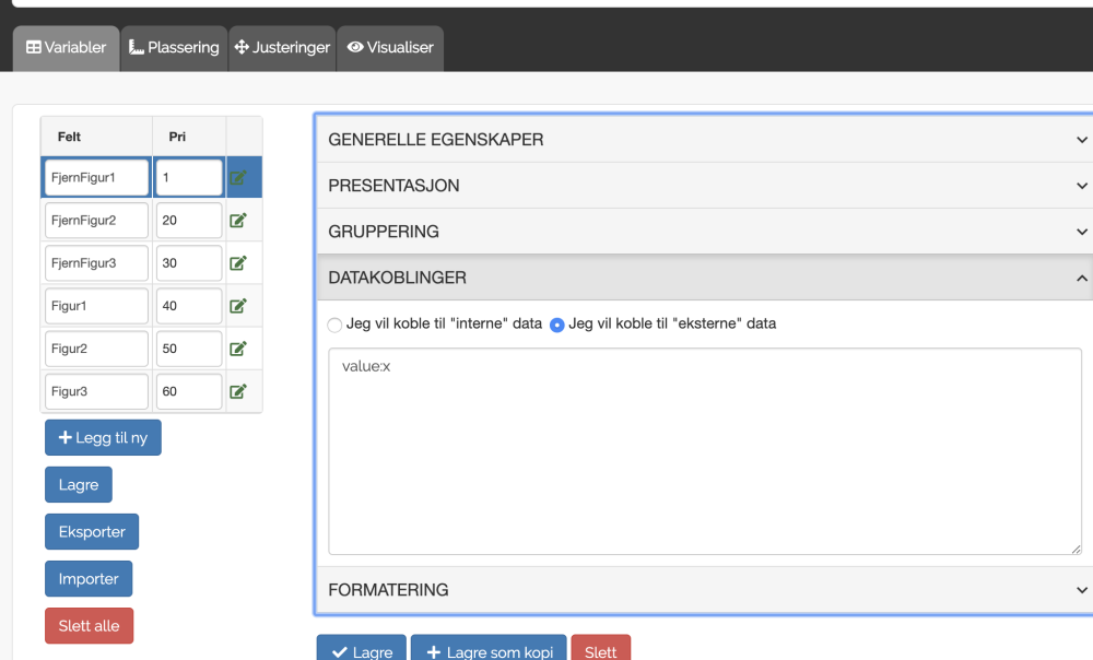 Under datakoblinger skriver du: