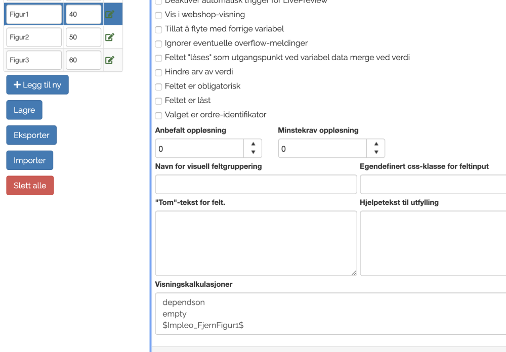 Felt B har en visningsregel som ser slik ut