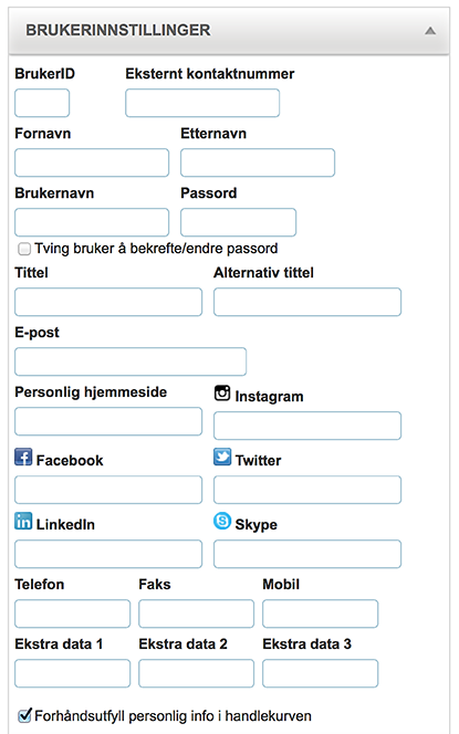 Ved å velge dette valget vil personlig informasjon forhåndsutfylles i handlekurven. Dette valget er skrudd på som standard.