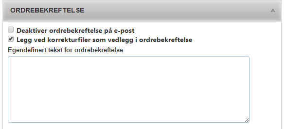 Dette valget styrer om det skal korekturfiler skal legges ved i ordrebekrertelsene som sendes på e-post.