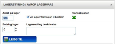 Du kan velge om lagerinformasjonen skal vises til bestiller eller bare vises for administrator. Ved å krysse av Vis lagerinformasjon til bestiller vises lagerbeholdningen for dette produktet til bruker.