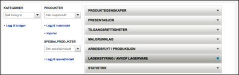 Alle innstillingene for lagermodulen finner du ved å gå inn på et mal produkt og velge LAGERSTYRING / AVROP LAGERVARE