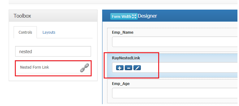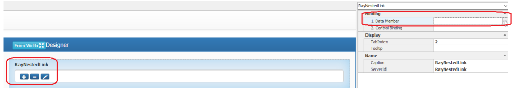 The second step in setting up the nested form link control is to link the control with the attribute defined in step one (See 7.1.2.6.1) in the Entity Design(See 7.1).
