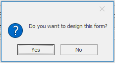 If user chooses “No”, the new Form opens in design mode, without any attributes by default.