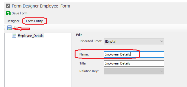 To rename the newly created form, the user should enter the Form Designer (double click on the form name that was created) in Form Management.